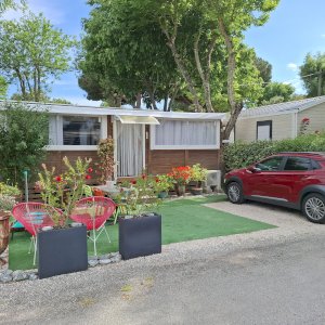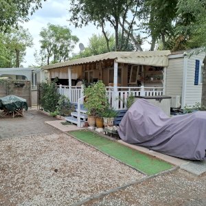 A vendre Mobil-home IRM Emmeraude 2Ch de 2014 sur parcelle de 150m2 N° 91-92 de 10.50mx4m avec canapé d'angle dans séjour et four, plaque induction, frigo, terrasse entièrement fermée et isolée de 9mx3m equipée d'un frigo américain, 1 LV, Plaque de cuisson + table et chaises A l'extérieur terrase dallée, barbecue aménagé + coffres de rangement ... Disponible à partir du 01/08/2025 Voir Conditions avec la direction