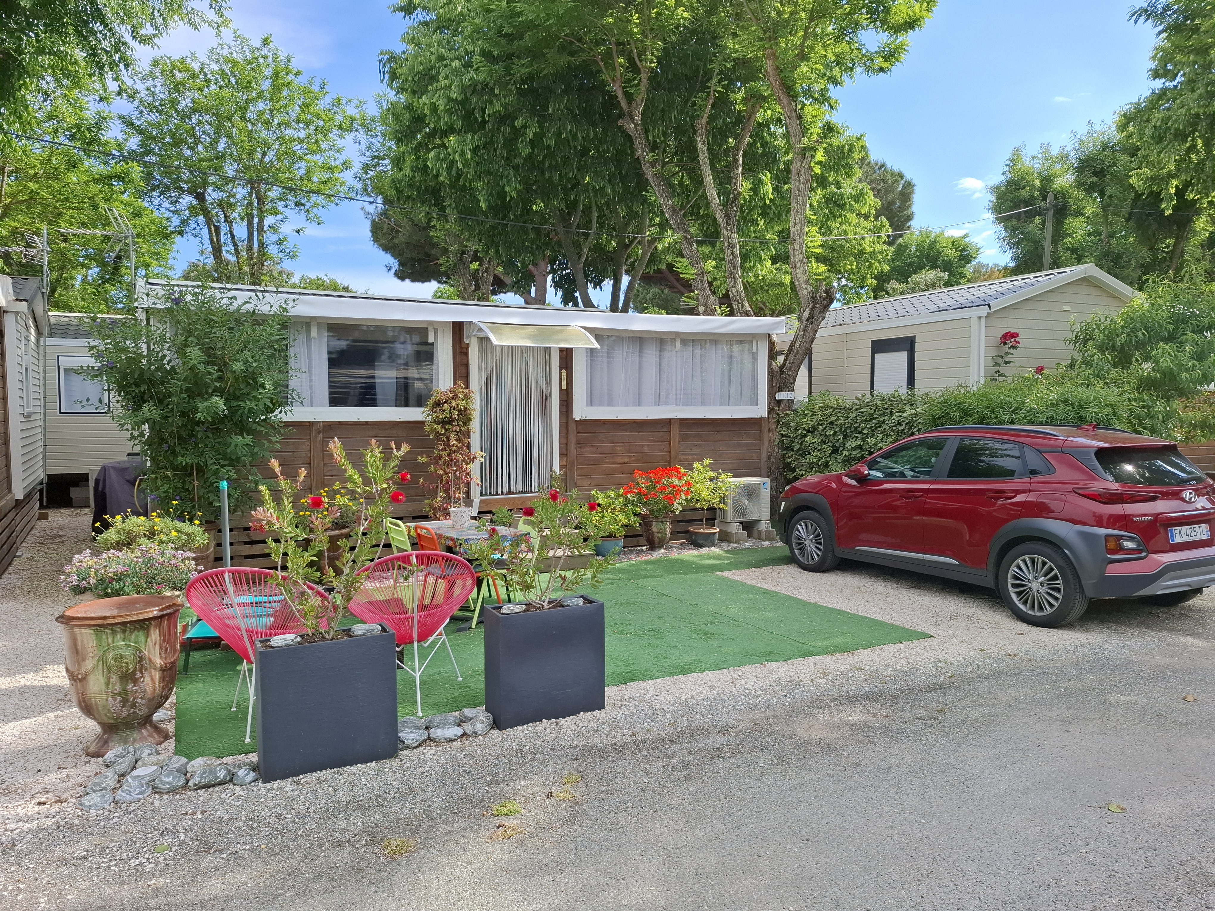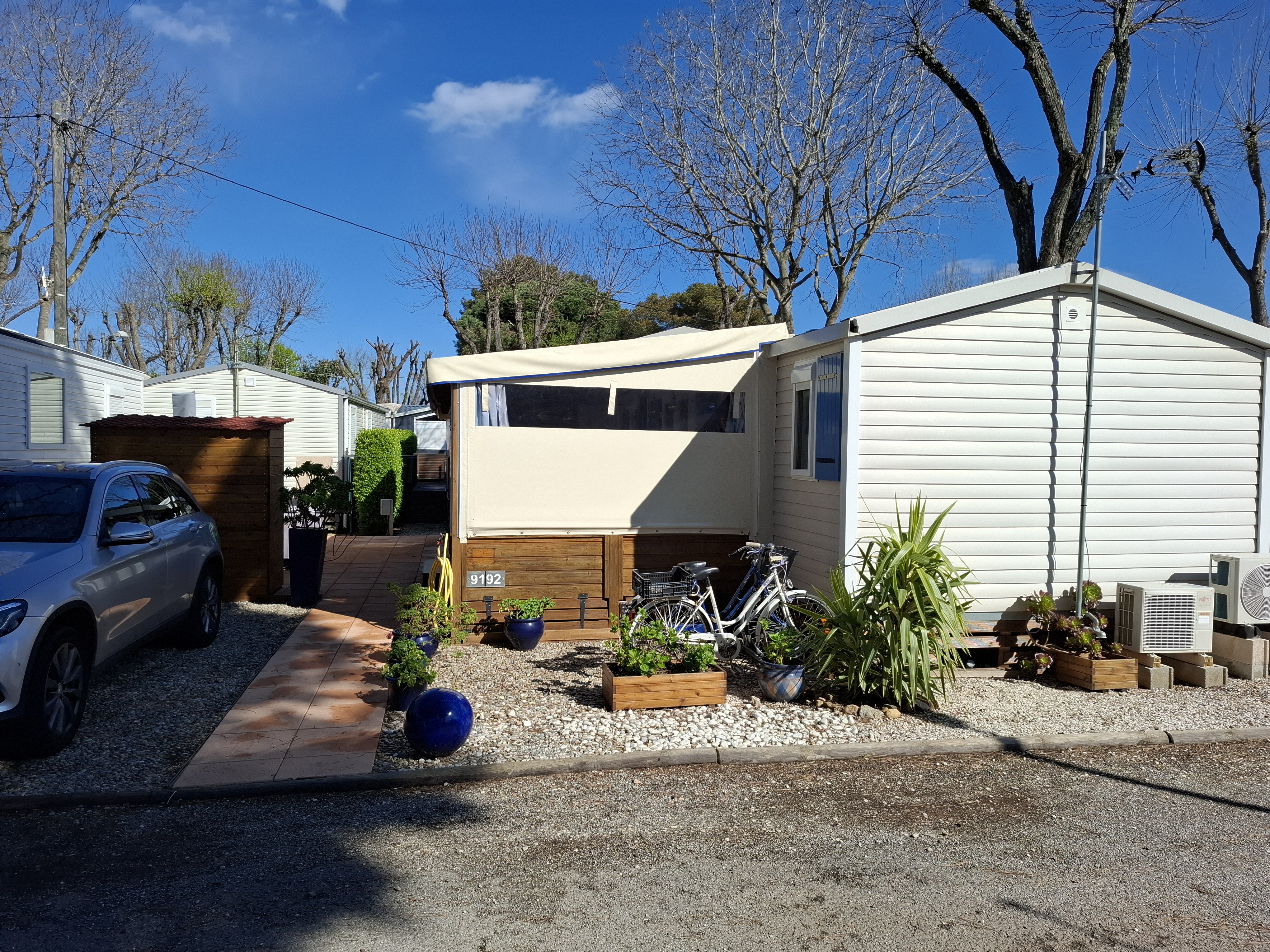 Mobill-Home IRM Horizon/Riviéra 2 Chambres +dressing de 2014 (9.13mx4m) tout équipé (Lave-linge, lave-vaisselle, climatisation récente) avec terrasse entièrement couverte et fermée de 9mx3m sur parcelle de 150m2 disponible mi-octobre.